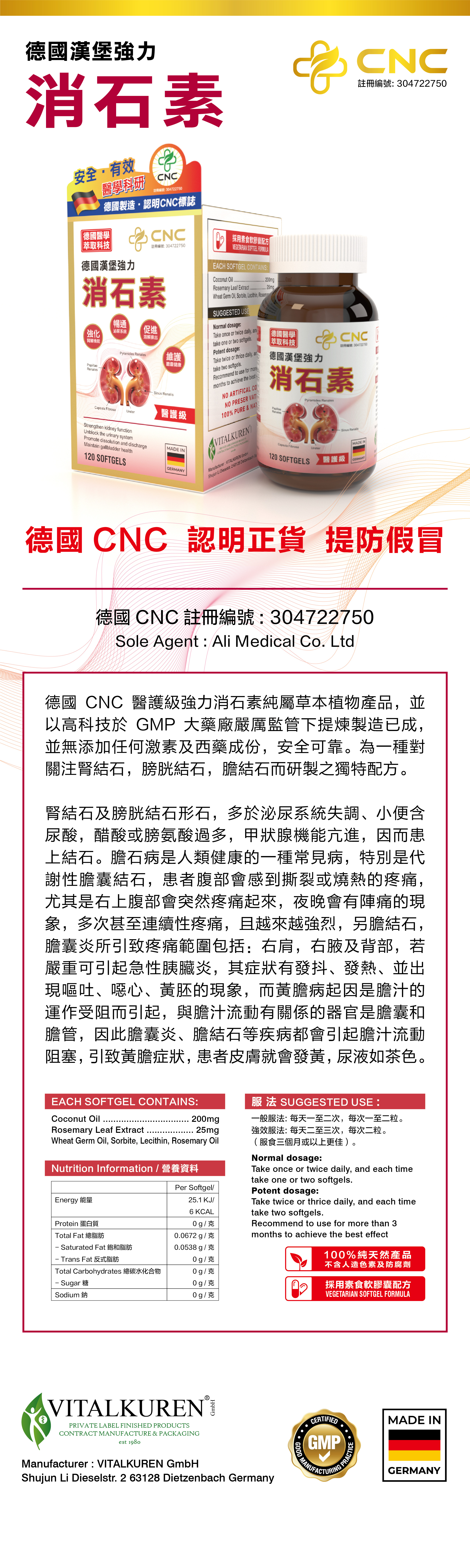 德國製造漢堡CNC強力消石素120粒